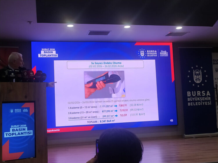 Bursa’daki baraj doluluk oranlarına da dikkati çeken Başkan Bozbey; Doğancı Barajı’nde yüzde 56, Nilüfer Barajı’nda yüzde 78,52, Çınarcık Barajı’nda yüzde 79,23, Ortalama doluluk oranının ise yüzde 67,3 olduğunu duyurdu. Bozbey, 2024 Şubat sonu doluluk oranının yüzde 92 iken 2025’te yüzde 35, 2026’da ise yüzde 66 seviyesinde olduğunu anımsatarak, vatandaşları su tasarrufuna çağırdı.