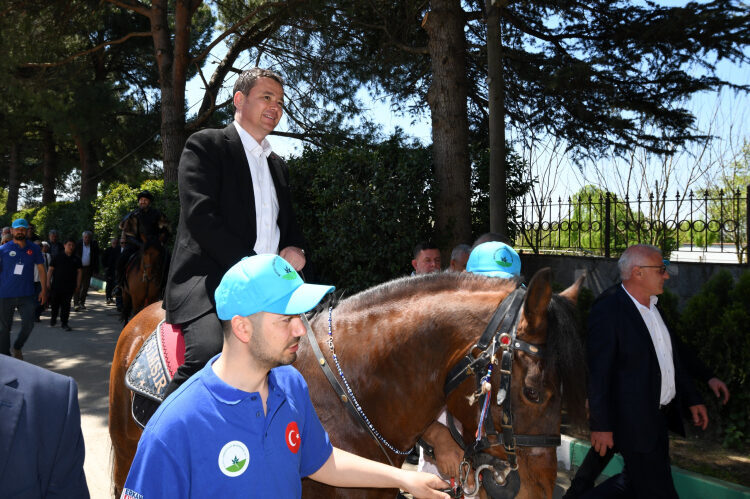 Osmangazi’de geleneği devam ettiren Osmangazi Belediye Başkanı Erkan Aydın, rahvan atıyla alana giriş yaptı. Yarışlara katılan tüm at sahiplerine ve binicilerine katılımlarından dolayı teşekkürlerini sunan Başkan Aydın, “Bu yıl Bursa’nın Fethi’nin 700. Yılı, Aralık ayında bütün bir yıl boyunca yapacağımız etkinliklerin lansmanını paylaştık. Rahvan At Yarışları da, 700. Yıl etkinlikleri kapsamında geleneksel hale gelen bir etkinliğimiz, ata sporumuz. Atla birlikte geldiğimiz bu toprakların 7 bin yıldır, Bursa’nın da 700 yıldır bize yurt olmasını sağlayan başta Osman Gazi, Orhan Gazi ve bütün büyüklerimiz olmak üzere; Yunan komutan tarafından Osman Gazi’nin kabri tekmelendiğinde meclis kürsüsüne pûşide-i siyah konarak, 2 yıl, 2 ay, 2 günün ardından 11 Eylül 1922’de Bursa’nın düşman işgalinden kurtulmasıyla o örtüyü kaldıran Gazi Mustafa Kemal Atatürk olmak üzere bütün atalarımızı, ecdadımızı, büyüklerimizi saygı ve rahmetle anıyorum. İyi ki onlar bizlere buraları yurt edindiler, biz de onlar sayesinde bu etkinlikleri yeni nesillere aktarıyor ve bu ata sporunun devam etmesi için ilgililere sunma fırsatı buluyoruz. Emeği geçen rahvan atçılarımıza, yarışmacılara, onlarla bütünleşmiş bir hayat süren değerli katılımcılara teşekkür ediyorum.” diye konuştu.