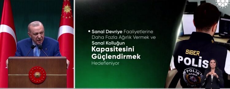 Bu noktada ‘siber devriye faaliyetlerine’ daha fazla ağırlık vermeyi, siber birimlerimizin kapasitesini güçlendirmeyi hedeflediklerini belirten Cumhurbaşkanı Erdoğan, “İnternetin karanlık dehlizlerinde görünür-görünmez varlığımızı yapay zekâdan da istifade ederek daha da güçlendireceğiz. Okul-kolluk iş birliğinin artırılması, yeni çalışma modellerinin geliştirilmesi, yine bu süreçte atacağımız adımlardan biri olacaktır.” dedi.