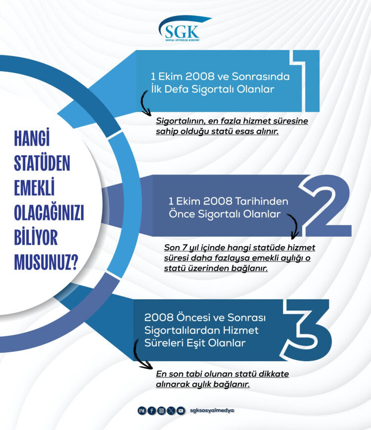 Sosyal Güvenlik Kurumu, emeklilikte hangi statünün esas alınacağını belirleyen kuralları yeniden hatırlattı.